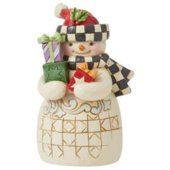Introducing the Jim Shore Heartwood Creek Mini Snowman with Checkered Hat Figurine, your new favorite holiday companion! At a dashing 3.54 inches tall, this festive fellow spreads cheer as the season’s most fashionable gift-giver. Armed with a bundle of beautifully wrapped presents and a grin that could melt the iciest of hearts, our snowman is all set for the season of giving. With a checkered scarf and a holly-brimmed Santa hat, this frosty friend is dressed to impress! Celebrate the season with this delightful snowman by your side, and let him sprinkle a little holiday magic on your home. Remember, a snowman with a checkered hat is worth melting for! Snag this chic and charming figurine before he’s gone with the winter breeze!