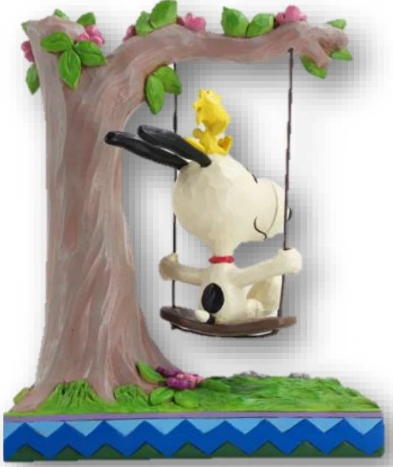 Happiness is being together….Snoopy and Woodstock take a sweet swing as they are surrounded by spring blossoms.